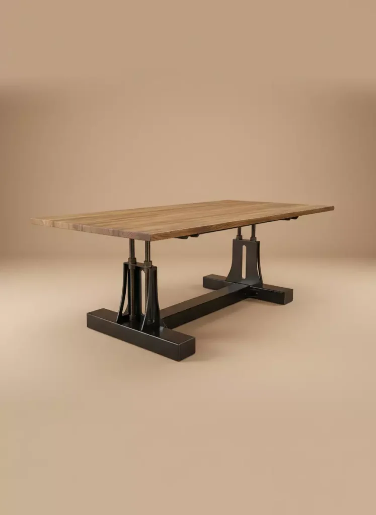 Просторный рабочий стол с массивной деревянной столешницей на надежном металлическом каркасе. Большая площадь столешницы обеспечивает комфортную работу с несколькими мониторами, документами и оборудованием. Устойчивая конструкция выдерживает значительные нагрузки. Подходит для домашнего офиса, студии, коворкинга, переговорной или мастерской. Под столешницей достаточно места для системного блока и ног. Изготавливается в нужных вам размерах от компактных до масштабных с возможностью встроенных систем хранения.
