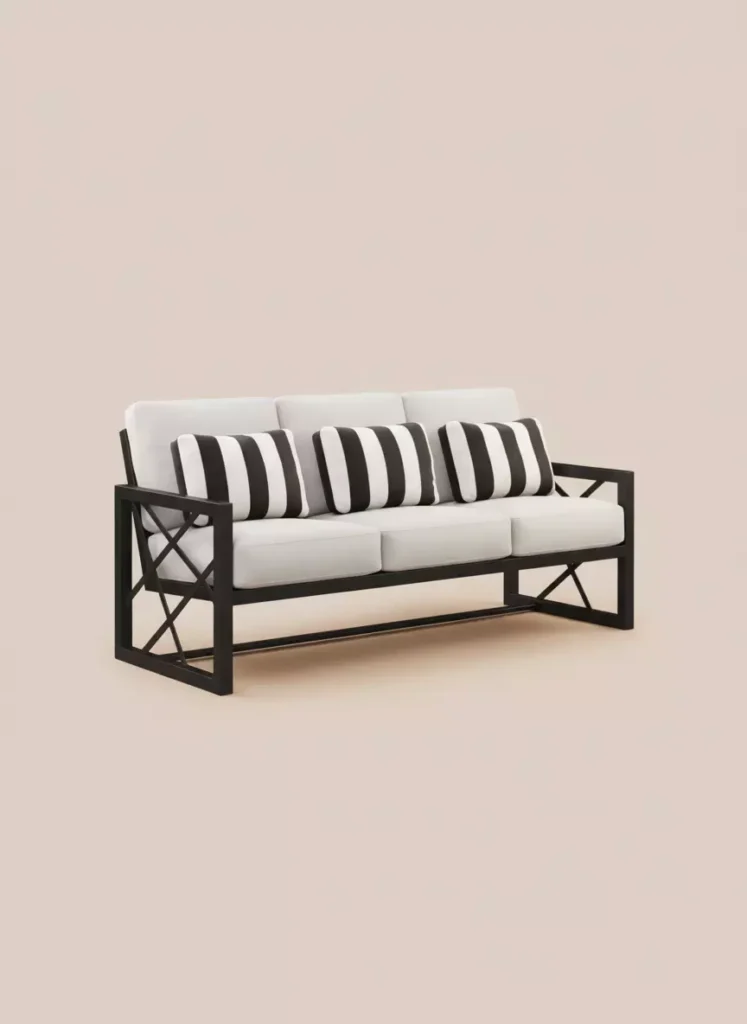 Комфортный прямой трёхместный диван с металлическими элементами в конструкции и мягкими подушками. Глубокое сиденье и спинка обеспечивают удобство для длительного отдыха. Строгие линии и качественная обивка делают диван универсальным для разных интерьеров от лофт до минимализм. Открытые металлические элементы подчеркивают индустриальный стиль. Подходит для гостиной, офиса, зоны ожидания. Возможен выбор ткани обивки и цвета металлических деталей под ваш интерьер.
