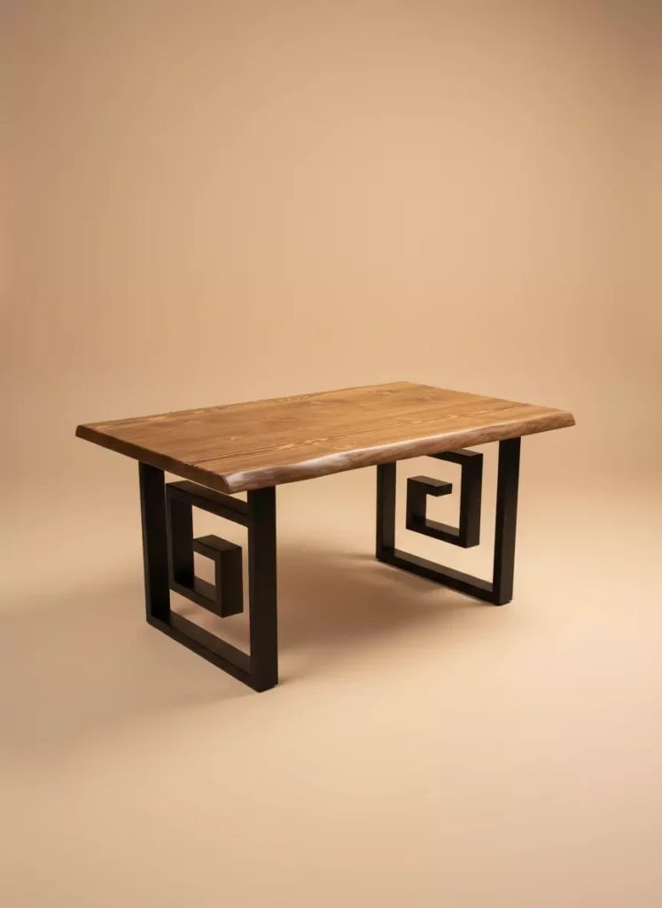 Необычный столик со сложной композицией металлического каркаса с геометрическими элементами. Скульптурное основание из пересекающихся линий и плоскостей создает интригующую игру форм, линий и теней. Деревянная столешница завершает композицию. Может использоваться как журнальный столик или самостоятельный арт-объект в интерьере. Подходит для современных пространств, где ценится уникальность. Изготавливается вручную по индивидуальному проекту с возможностью адаптации форм и размеров.