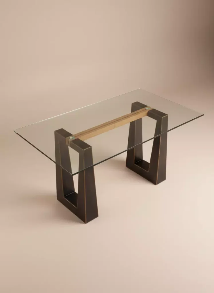 Изящная консоль с тонким металлическим каркасом и прозрачной стеклянной столешницей. Легкая конструкция создает ощущение воздушности и визуально не загромождает пространство, сохраняя ощущение простора. Закаленное стекло обеспечивает безопасность и долговечность. Подойдет для прихожей как место для ключей и мелочей, для гостиной как декоративная консоль или как туалетный столик в спальне. Минималистичный дизайн сочетается с любыми интерьерами. Размеры адаптируем под ваше пространство.